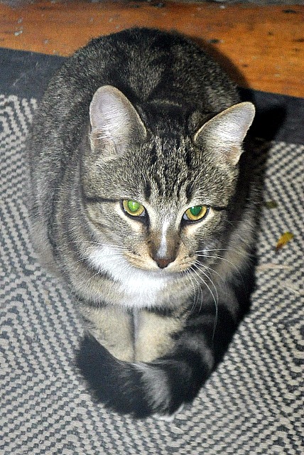 I was surprised to find out he was an unneutered male cat. He didn't have that beat-up-lookin-for-girls look. I have a feeling he has been indoors and somebody got tired of him spraying and dumped him. He's SWEET and doesn't know why he's there.